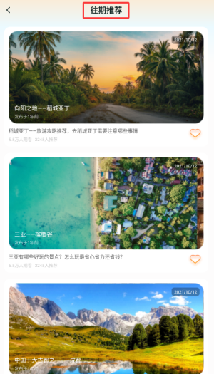 2、在首页导航栏点击"往期更多"选项,浏览历史旅游攻略和景点推荐内容。