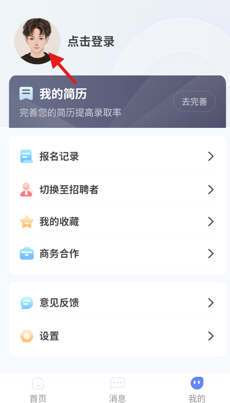 2、进入 “我的” 页面后,找到头像所在位置并点击,进入账号的登录界面准备操作。