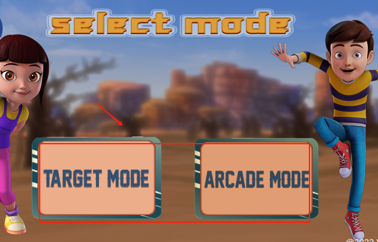 2、SELECT MODE亮闪闪,红箭头指着左边TARGET MODE,直接点它选靶场模式开射。