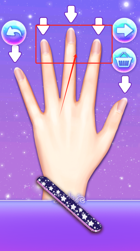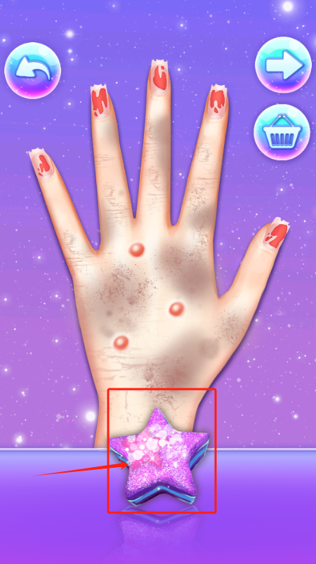 3、用左右箭头换指甲样式,点购物车买闪亮星星贴纸,装饰破损的指甲超酷的。