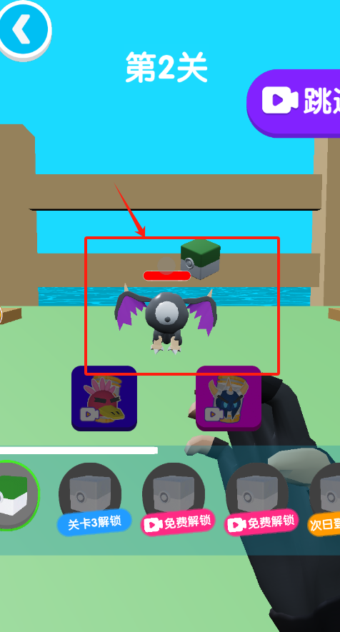 4、操控灰色小精灵过关,右上角跳过能跳过本关,下方广告按钮可解锁新内容。