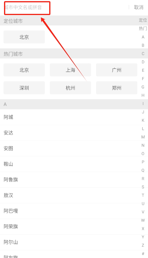 4、在搜索框里输入城市名字,输完点确定,这个城市的天气就加到你的列表里了。