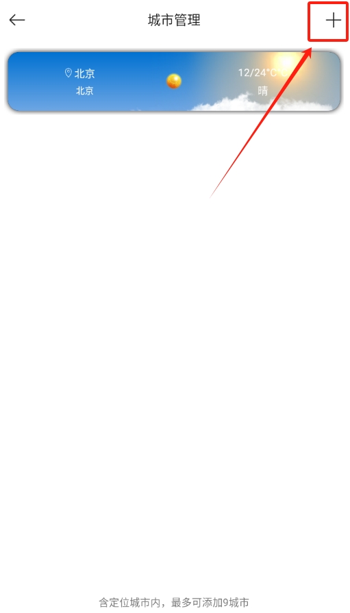 3、在弹出的菜单里点击右上角有个小小的加号选项,准备输入你想关注的地方。