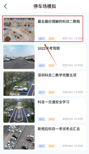 2、视频学习选项,学员可通过应用观看针对各类驾驶场景的教学视频,以直观的方式掌握驾驶技巧,助力顺利练习。