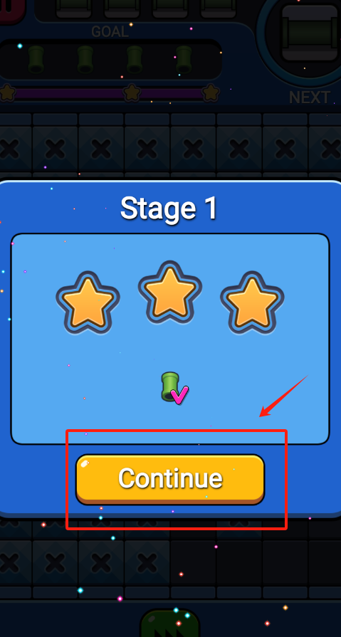 4、管道通关后点黄底粉色对勾按钮,拿三星评分,再点Continue进下一关。