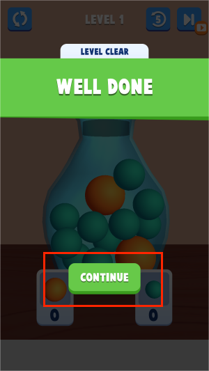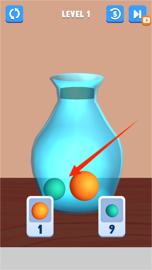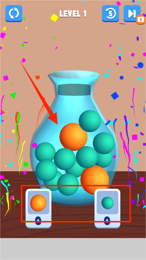 3、当所有球体成功装入容器时,屏幕会绽放庆祝特效并判定挑战成功。