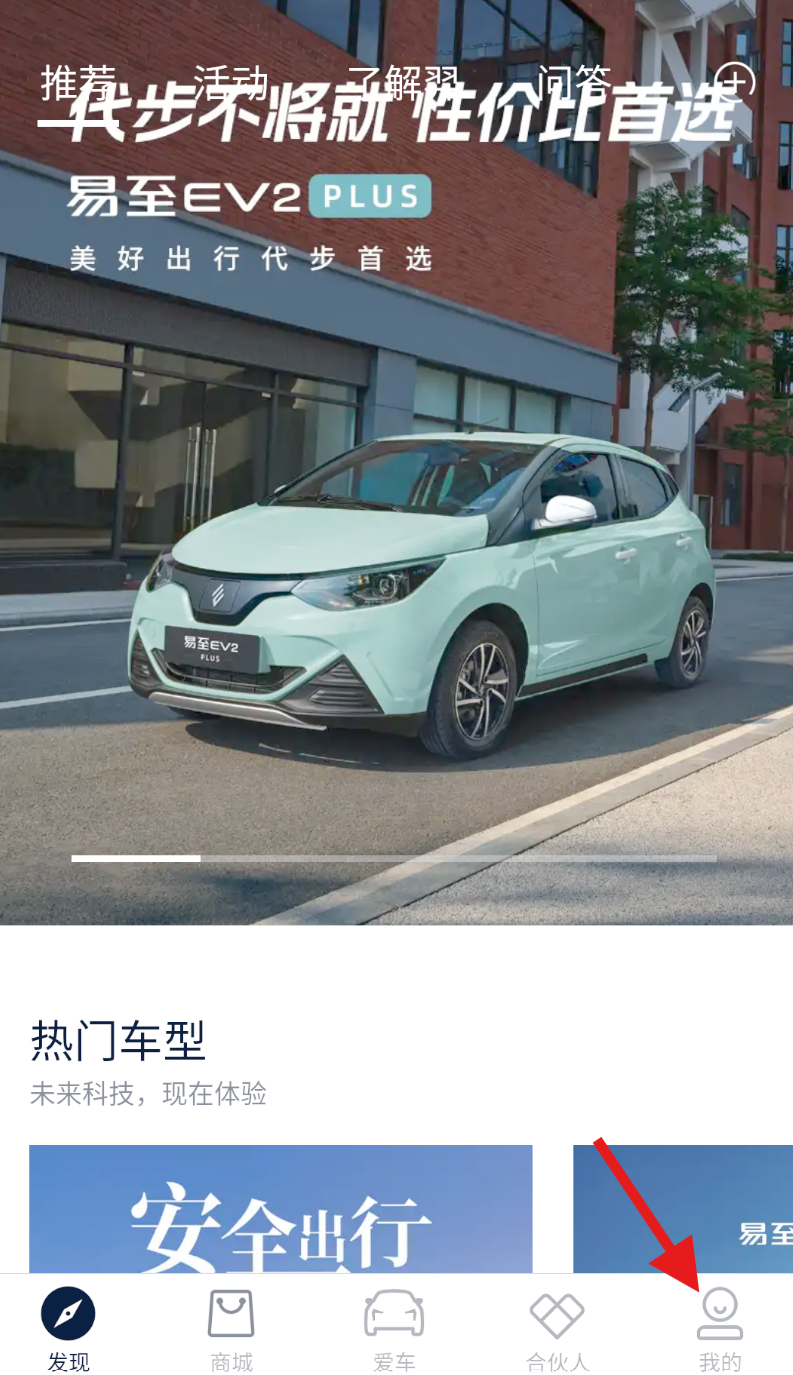 1、打开江铃新能源软件,在底部导航栏中找到 “我的” 选项并点击,进入个人中心页面。