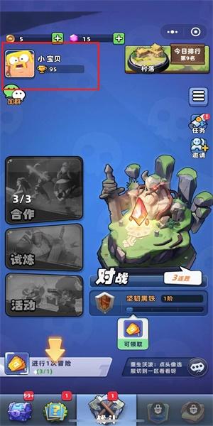 1、玩家进入游戏之后要先将新手教程完成,之后再点击左上角的头像。
