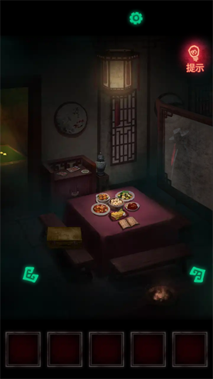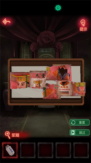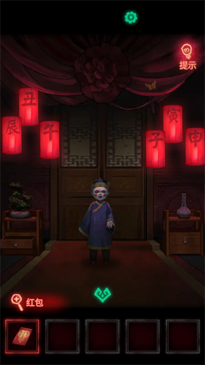 5、根据灯笼上的字,对照桌子上纸书的数字,就可以知道密码了,密码是527139。打开盒子之后,把冥币放到红包里,然后再拿上红包。