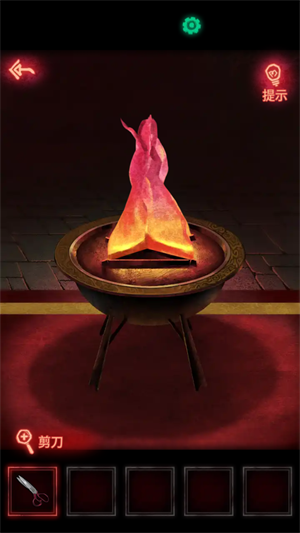 8、用钥匙打开右边抽屉,就可以获得一把剪刀。再用剪刀剪一下这上面的纸火,就可以获得一块布。