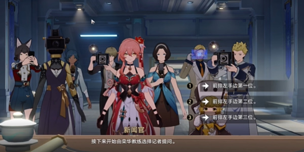 3、演武仪典活动中四次新闻发布会均选择卡美丽提问(第一个选项,左手边第一位)。