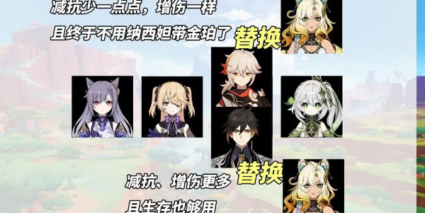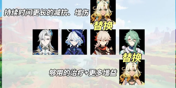 5、刻晴+菲谢尔+万叶/钟离+纳西妲:替换队伍中的万叶/钟离位,直接解决原先容错/上限难两全的尴尬问题。