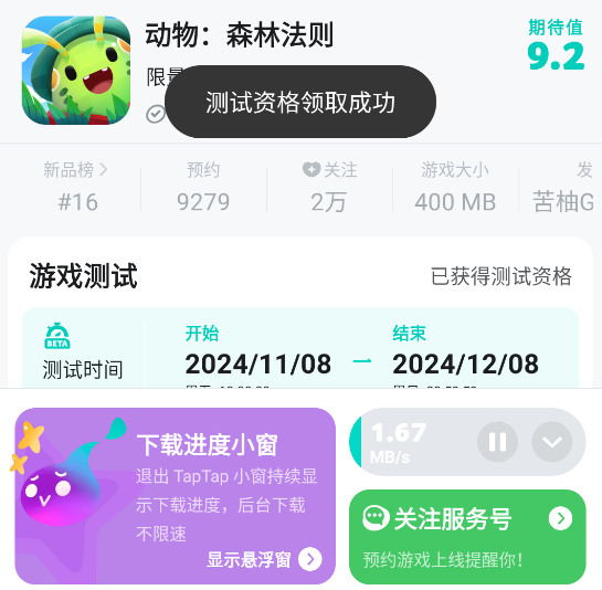 2、然后点击这个参与这个测试报名之后就可以直接自动获取这个资格。