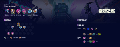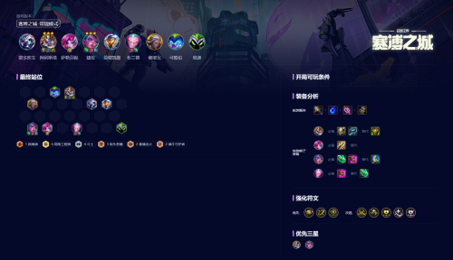 一费奉献、星夜、不侦查不变阵是这套阵容胜率最高的三个符文。开局的叠血符文也能拿,不过节奏需要放慢点。后续两个符文建议拿战力,推荐透体莲华、精心赋能。