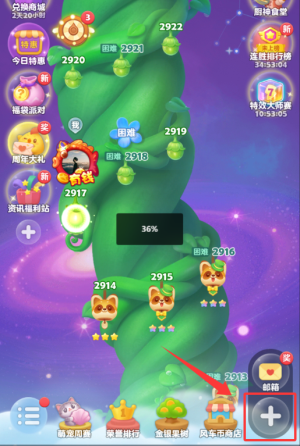 1、启动开心消消乐后,在游戏主界面右下角找到扩展菜单按钮,点击展开功能选项列表。
