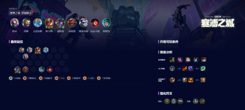 3-2阶段升6人口后卡利息搜卡,优先凑5辛迪加羁绊,三星卡牌与诺手后升8人口补女枪完善阵容。