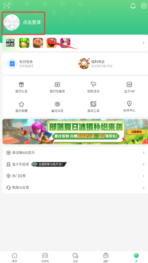 2、进入个人中心页面后,直接点击顶部醒目的"点击登录"按钮(详见界面示意图)。