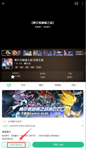 3、在游戏详情界面,直接点击"免下载云玩"按钮即可免下载立即畅玩。