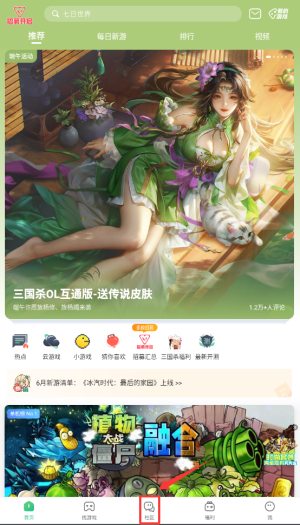 1、启动4399游戏盒APP,在底部导航栏选择"社区"功能进入互动交流页面(位置参考界面指引图)。