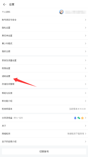 2、在设置菜单中找到"消息通知"选项,点击进入通知管理界面(详见操作示意图)。