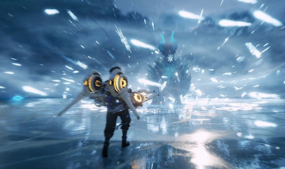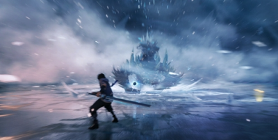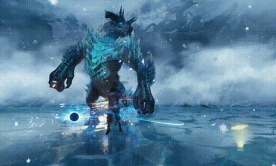 3、当蔚蓝神兽的生命值下降到一定水平时,它会自动转变形态,形成一片“寒冰领域”。在这一阶段,它不断释放技能,召唤寒冰风暴和多个冰锥。整体设计上,游戏展现出高水平的完成度与卓越的画面效果。
