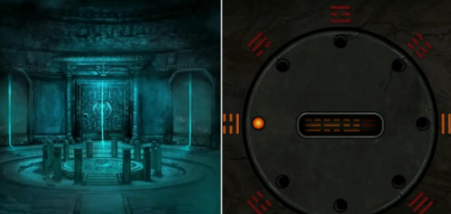 1、进入墓穴后点击中间的机关,根据阵盘提示将红点移动到相应位置,再点击外围卦象即可打开墓门。