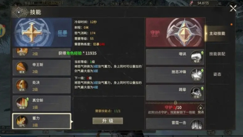 2、旋风斩可对周围敌人造成持续范围伤害,而暴怒一击则是隐藏的致命技能,能在积累怒气后瞬间释放巨额伤害。狂暴姿态被视为核心技能之一,开启后攻击力大幅提升,但防御会有所下降,需要玩家谨慎把握时机。