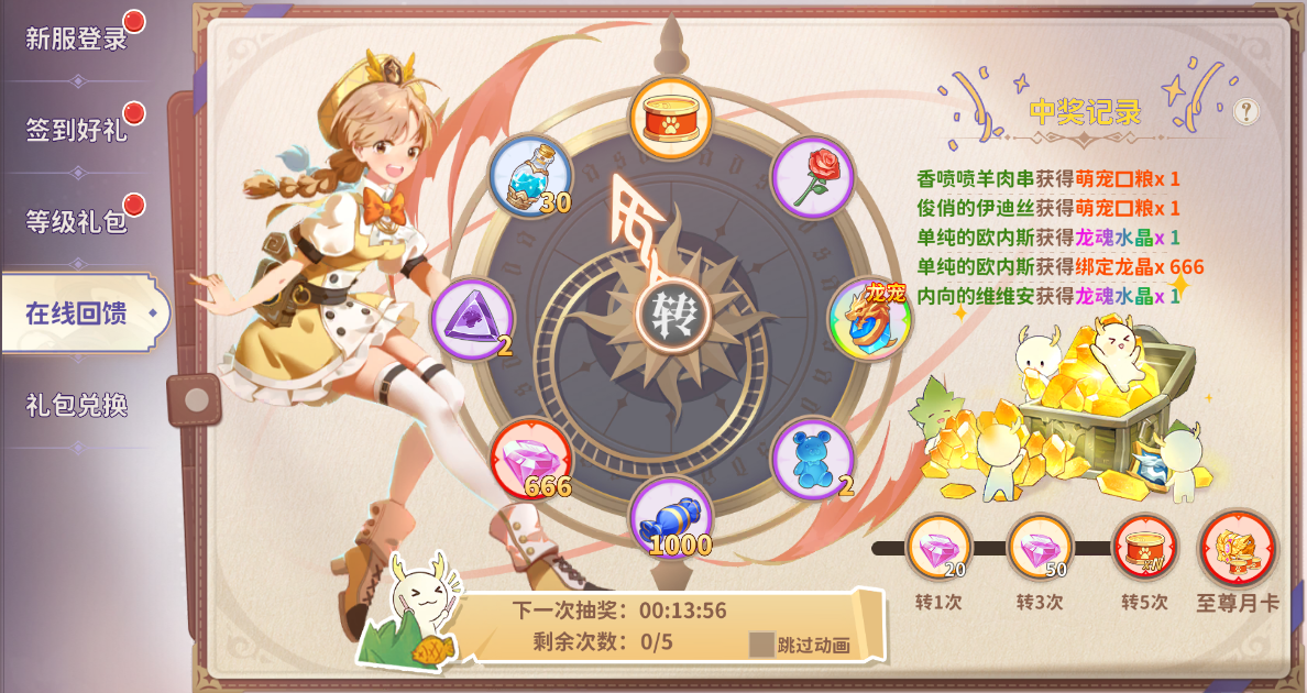 4、活动期间完成每日的活跃目标,可参与转盘抽奖,有概率获得超级大奖绑定龙晶×666以及超稀有道具龙魂水晶哦。
