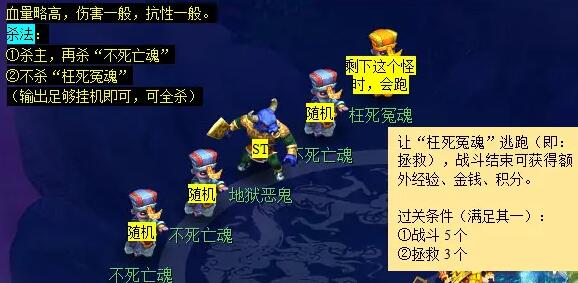 ②枉死地狱:随机坐标找【枉死冤魂】战斗,打完找传送人进入下一层。