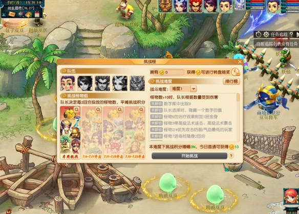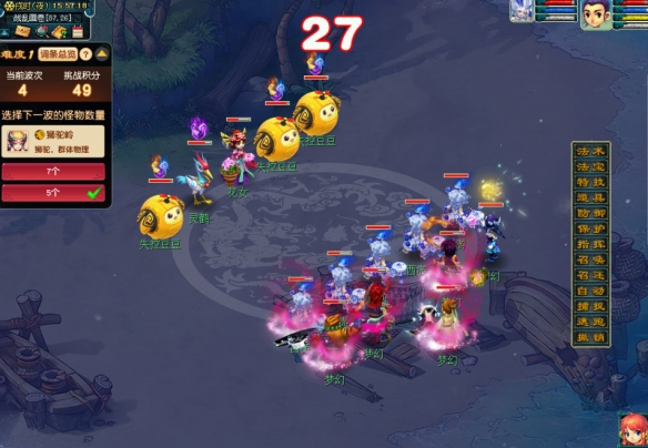 3、挑战持续15回合,每回合7波怪物,队长可自己选择怪物数量,数量不同怪的伤害和气血也不一样。
