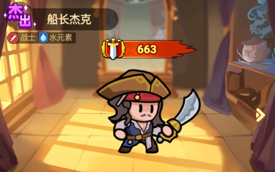 2、船长杰克有个实用技能,每5秒向前捅一剑,造成65%范围伤害。把这海盗练到40级,开局直接带这招,清兵效率不错。建议适当培养,近战AOE在推图时挺管用。