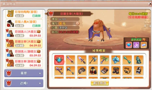 3、莱斯领主刷新时间(每天21:00)一个大领主、一个副领主。