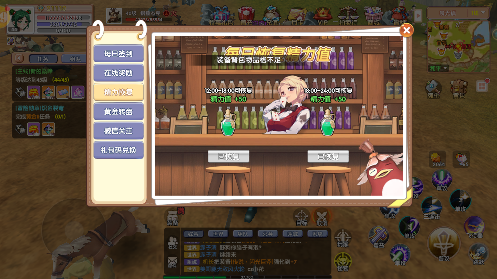 2、精力分配:每天100精力,优先投入试炼之塔(配合经验棉花糖),剩余精力刷日常副本。