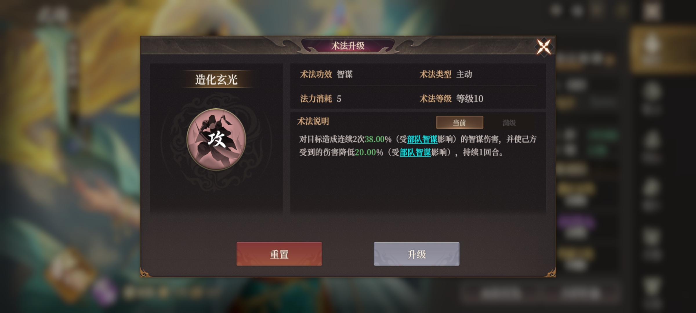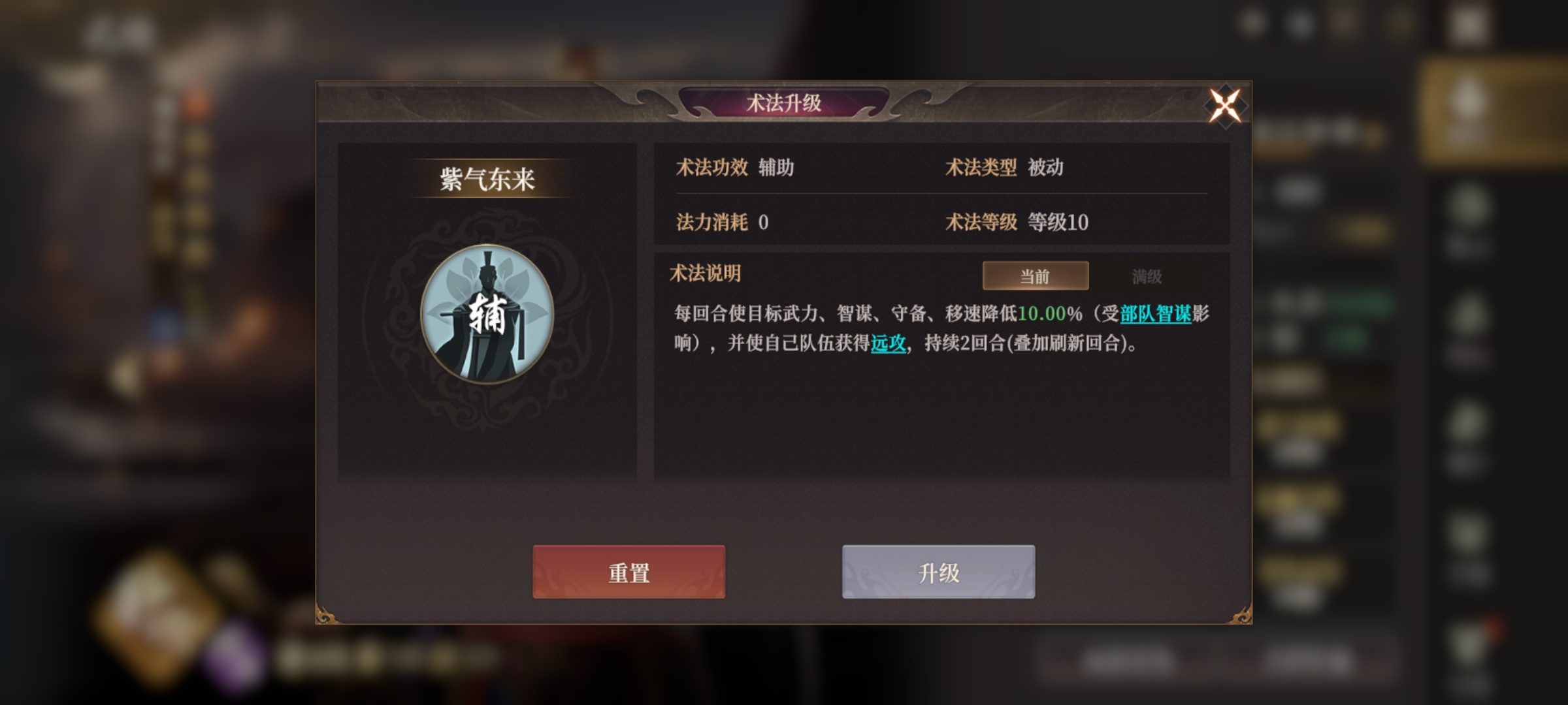 3、姬发技能介绍,推荐特技:善战、支离,下调敌方属性,永久增加1格攻击距离。