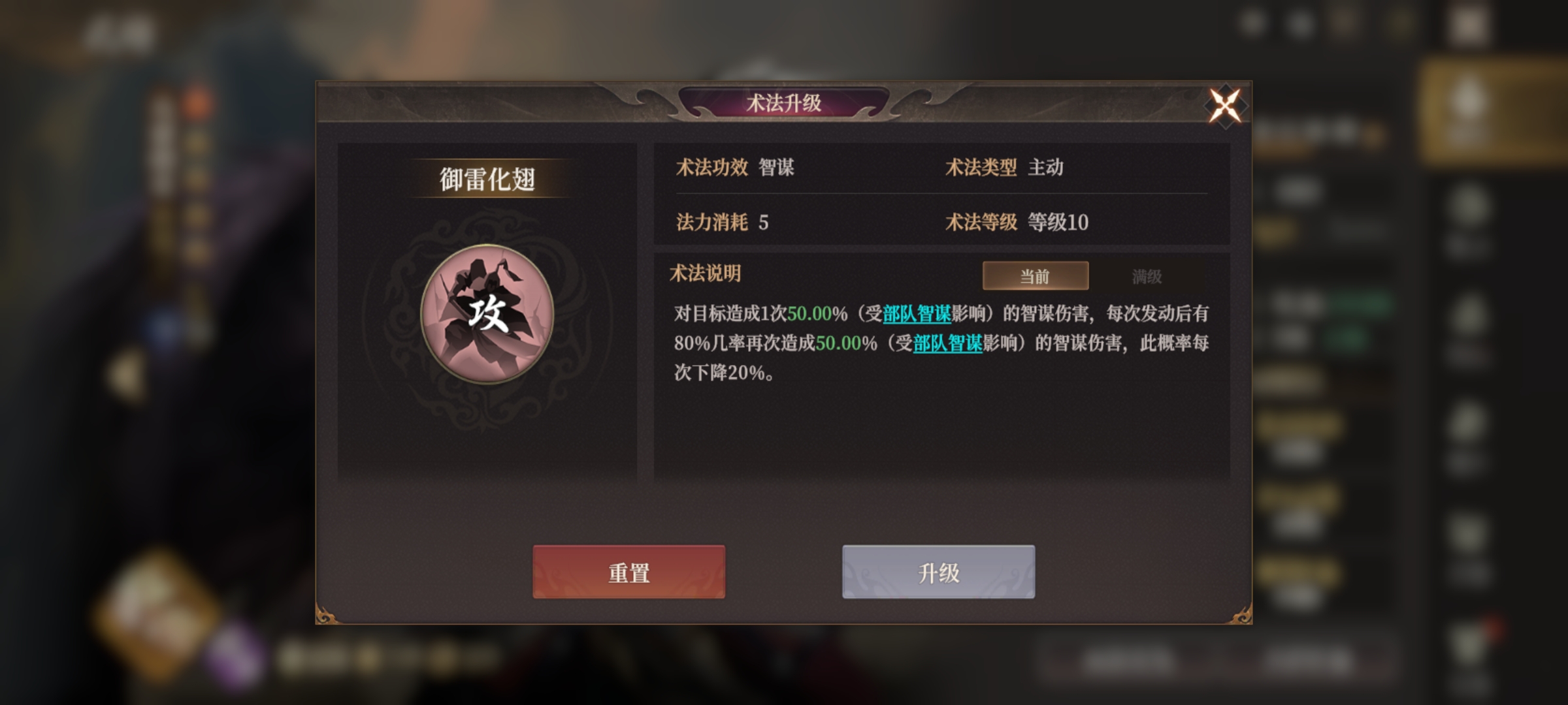 2、雷震子介绍,推荐特技:擅谋、修身,伤害率50%x1~4多次发动。