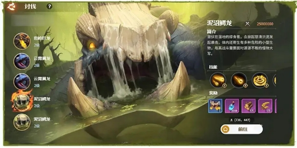4、泥沼鳄龙:潜伏在湿地的掠食者,会掀起怒涛洪流发起袭击,与其战斗需要面对源源不断的怪物大军。推荐上阵具备范围伤害能力的英雄与士兵,除此之外,还需要关注鳄龙召唤其他怪物加入战斗的时机,及时调度军团以减少损失。