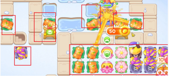 4、接着在中上方放一个汽水,没有敌人路过时可优先攻击绿色宝箱。