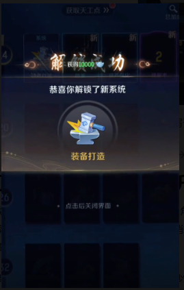1、如果玩家的角色等级达到14级,那自然就可以解锁装备的打造,然后跟着步骤就可以轻松的开启。玩家找到装备打造的图标,只需要消耗4点天工就能直接解锁,在解锁之后系统会提示解锁成功。也就意味着正式激活装备打造。