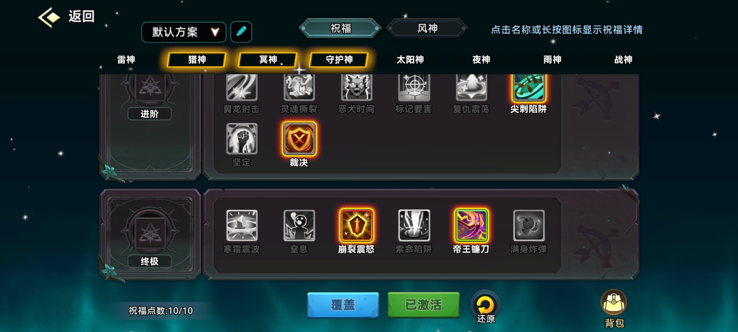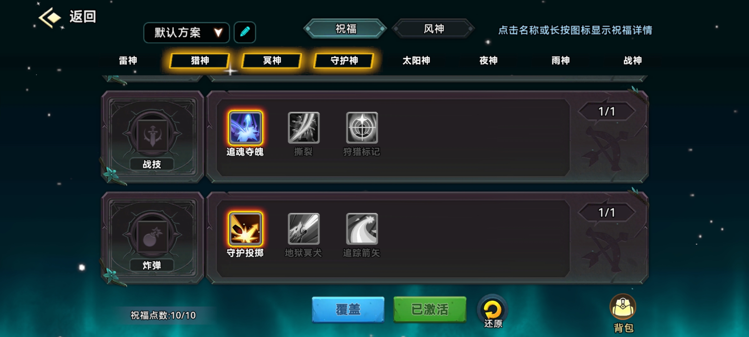 3、打①④这组boss要带猎神、冥神和守护神。这俩货弹幕多得要命,主要靠反弹打伤害,输出反而次要。守护神给的多条命很关键,没这个容错率根本扛不住弹幕海。