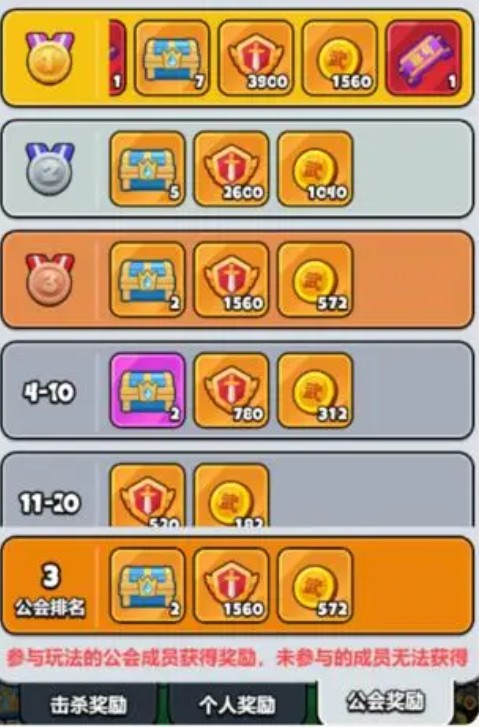 2、参与奖励:公会成员每使用一次进攻次数,就会获得80公会币和260专武币(记得每天都要打,就算难度很高打不了多少也要拿满参与奖)。