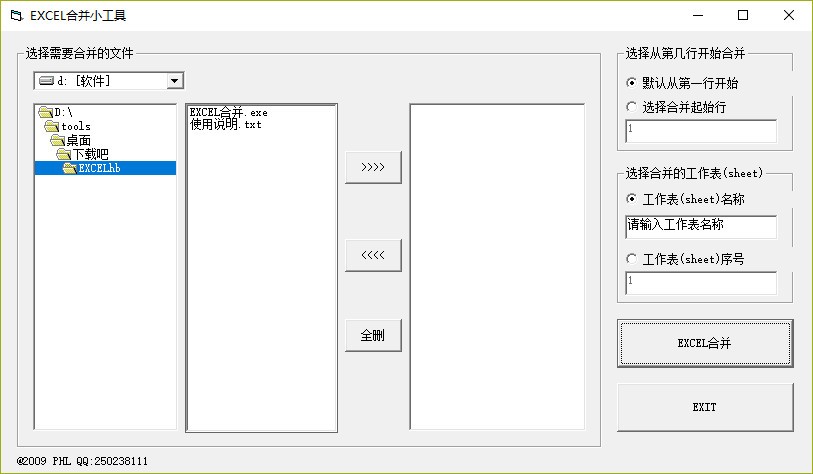 EXCEL合并小工具是一款非常专业且优秀的Excel合并软件,可帮助用户快速将Excel文件进行合并,软件界面简洁直观,使得操作也变得非常简单,只需选择需要合并的文件,选择从指定行开始合并,然后选择合并的工作表,通过几个简单的步骤一键即可进行合并,快速且准确的输出合并后的文件,可直接在软件浏览磁盘,查看不同的文件夹中的文件,将需要的文件转移至待合并文件列表,便于管理需要合并的Excel文件,直接了解文件的合并个数,这么好用的软件,赶快下载试试吧!