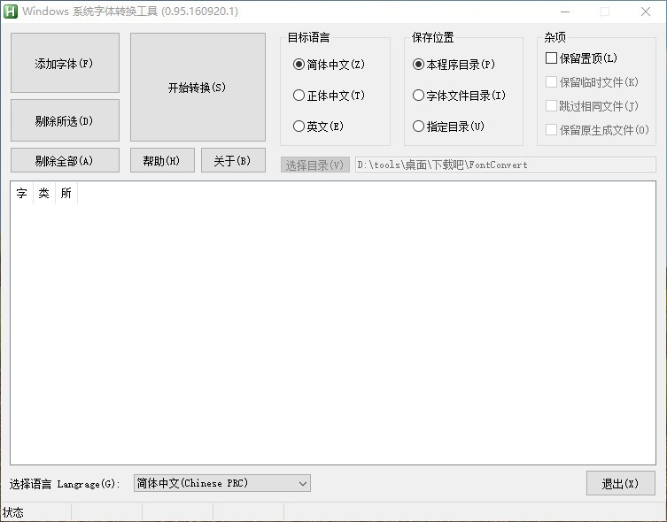 Windows系统字体转换工具是一款非常专业且优秀的系统字体转换软件,可帮助用户快速将系统字体进行转换,具备简洁直观的操作界面,旨在为用户提供最简单的操作,只需添加字体,选择目标语言,设置保存位置,一键即可进行转换,快速且准确的输出转换后的字体,输出目录方面,可自定义设置,将转换后的字体保存在指定位置,便于快速查看,支持不同的目标语言以及界面语言,选择自己喜欢的语言进行设置,总而言之,这是一款非常好用的软件,如果您有需要,那就赶快下载体验一下吧!