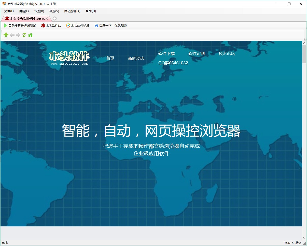 木头多功能浏览器是一款非常专业且优秀的站长浏览器,专门为站长们打造,可帮助用户可以轻松监控自己的网站内部变化,当您想知道缺货的商品什么时候有货,当您想知道小说什么时候更新,当您想知道什么时候有订单砸过来,都可以使用到这款软件,不用一次又一次地刷新查看页面了,自动刷新、填表、点击、采集以及监控页面内容变化,支持多标签,可添加多个标签,还可对这些标签进行管理,使用起来更加方便,支持自定义设置浏览器,包括主页、标签页、弹窗等,欢迎有需要的用户下载体验