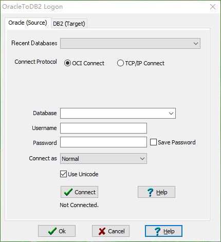 OracleToDB2是一款非常专业且优秀的Oracle数据库转DB2软件,可帮助用户快速将Oracle数据库转换为DB2,我们在使用数据的过程中,很多时候需要将一个数据库中的数据转移到另外一个数据库,这时候就可以用到这款软件,软件界面简洁直观,虽然为全英文界面,但是一点也不影响简单的操作,旨在帮助您将Oracle数据库中的表与其它数据快速的转换与输出DB2,只需对Oracle和DB2参数进行相关设置,使用起来非常方便,总而言之,这是一款非常好用的软件,如果您有需要,那就赶快下载体验一下吧!