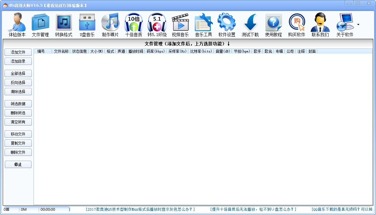批量制作U盘、SD卡音乐;支持无损、有损、2.0、5.1环绕声;支持14种格式;支持和谐大众车型。
