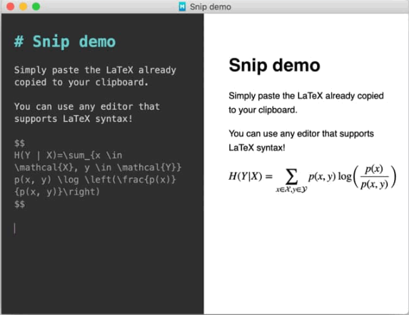 Mathpix Snip是一款实用的数学公式扫描识别软件,它可以通过截屏、拍照等方式从PDF文档,电子书,手写图片中获取用户需要的数学公式,并快速的创建可编辑的数学公式文档;软件对于手写或者打印的文档有着强大的解析识别能力,简单的识别扫描后就可以将其输出到计算机的剪切板中等待用户使用;软件生成的文档可与目前主流的各种编辑器兼容,用户能轻松将识别出来的公式粘贴到Overleaf、LaTeX、Typora等等编辑器中进行编辑处理;有了这款软件,用户在制作数学电子文档时将更加便捷。