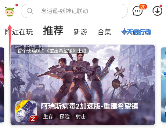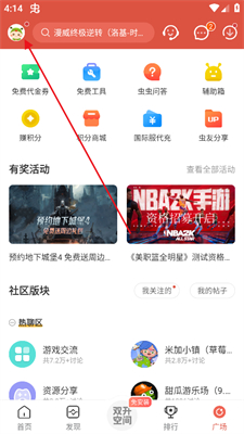1、进入虫虫助手首页之后点击左上角的头像。
