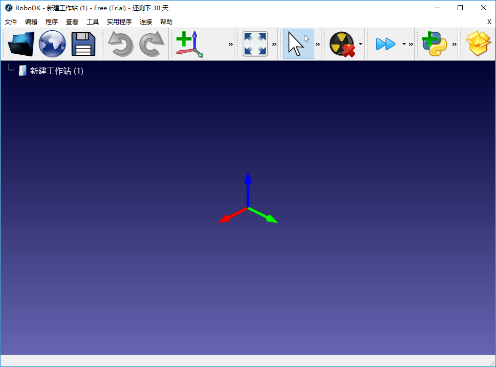 多个RoboDK项目可以同时存在于软件中。双击左侧树型菜单中的工作站图标GettingStarted-图片5激活并显示某一个项目。