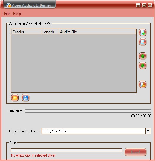 它显示曲目编号,长度和音频文件名。它使您可以选择计算机上的目标刻录驱动程序,还可以创建包含APE,FLAC和MP3文件的音频CD。