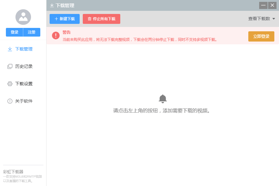 彩虹视频下载器是一款直播视频下载器,该软件可以为用户提供M3U8格式以及RTMP协议的视频或直播的下载服务;软件稳定且简单易用,可以批量下载直播视频,安全高效;不少用户有在网上看过一些直播课程,通常这些直播视频需要用户持续性的观看,因为直播的内容很多是不支持回放的;今天推荐这款彩虹视频下载器是一款针对直播视频下载的一款下载工具,这款软件的界面干净整洁,使用起来会感觉到很简单,它可以帮助用户将直播内容保存下来,使用户可以离线并在任何时间任何设备中反复观看直播的内容。